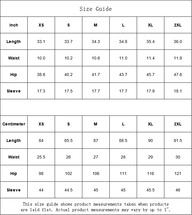 This size guide shows product measurements taken when products are laid flat. Actual product measurements may vary by up to 1".